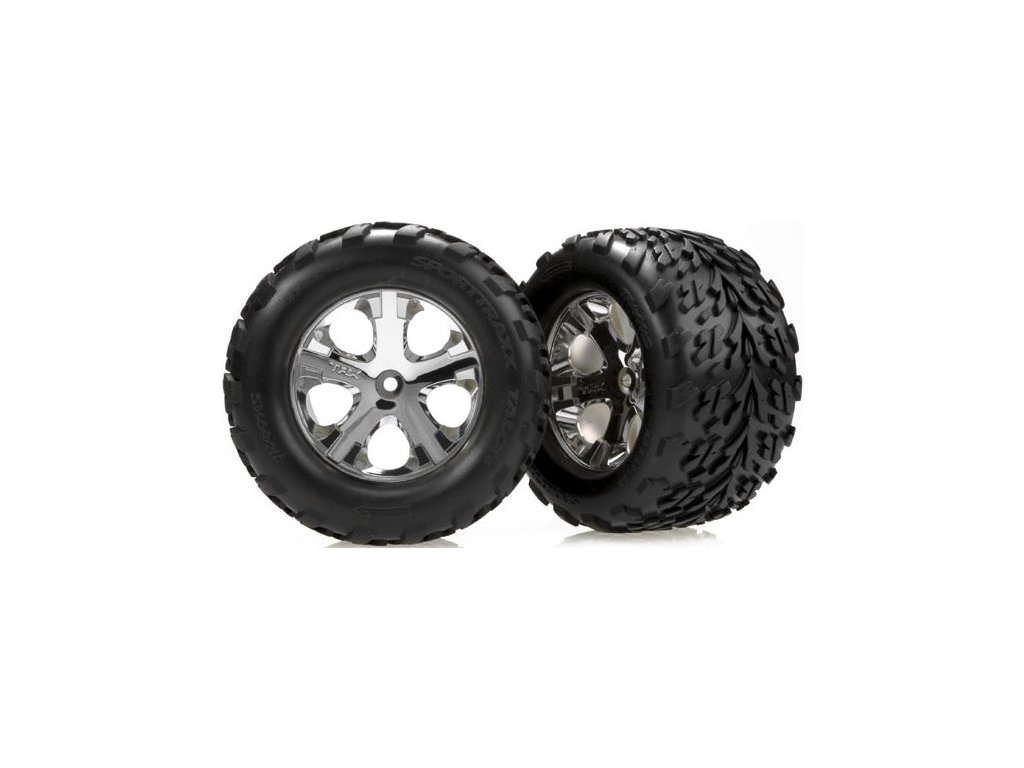 Kompletní kola pro RC modely aut. Chromované disky All-Star s nalepenými pneumatikami Talon a vložkou.