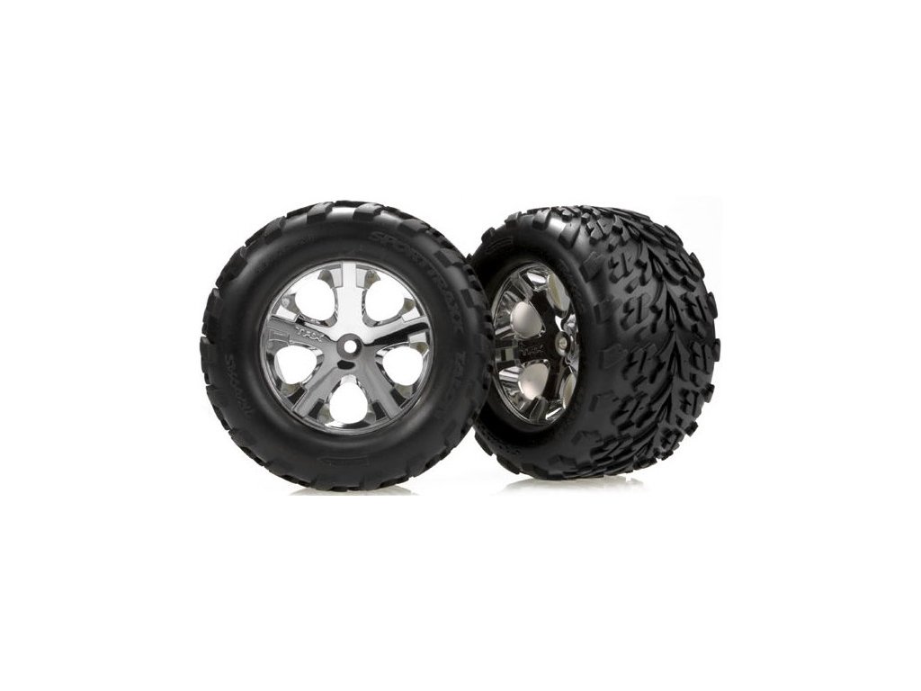 Kompletní kola pro RC modely aut. Chromované disky All-Star s nalepenými pneumatikami Talon a vložkou.