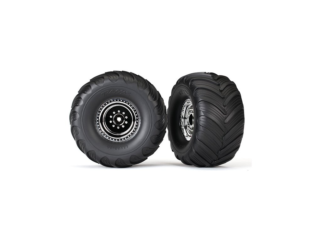 Kompletní přední kola Traxxas Terra Groove pro RC modely aut. Disk v provedení chrom, pneumatiky Terra Groove.