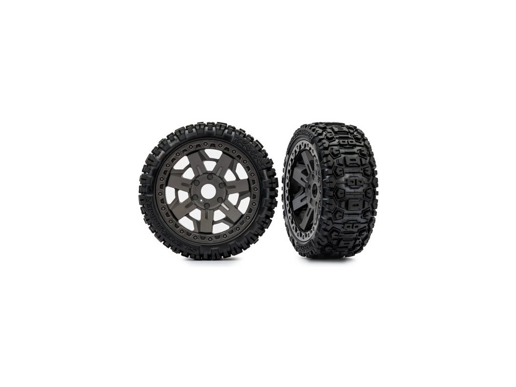 Traxxas kolo 3.0", disk šedý, pneu 4.5" Sledgehammer (2), unašeč 17 mm. Dezén s otevřeným blokem pro maximální trakci.