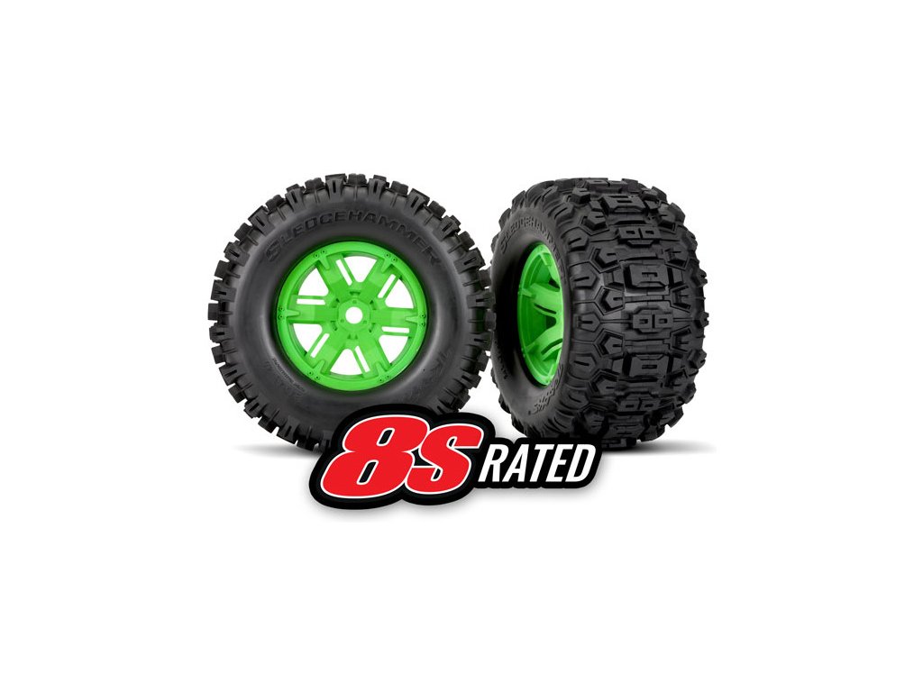 Traxxas kolo 4.3/5.7", disk zelený, pneu Sledgehammer (pár)