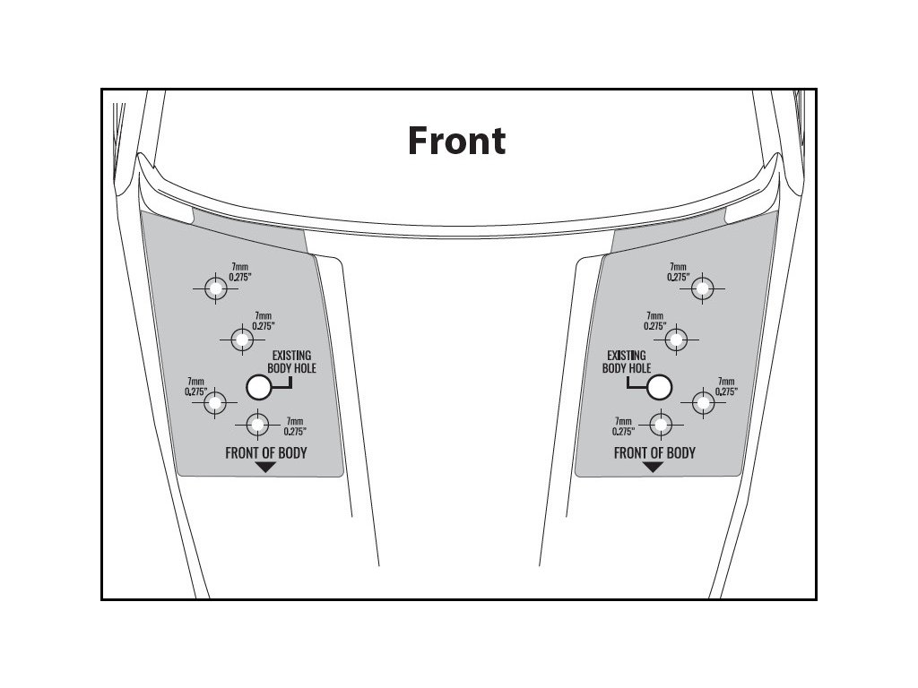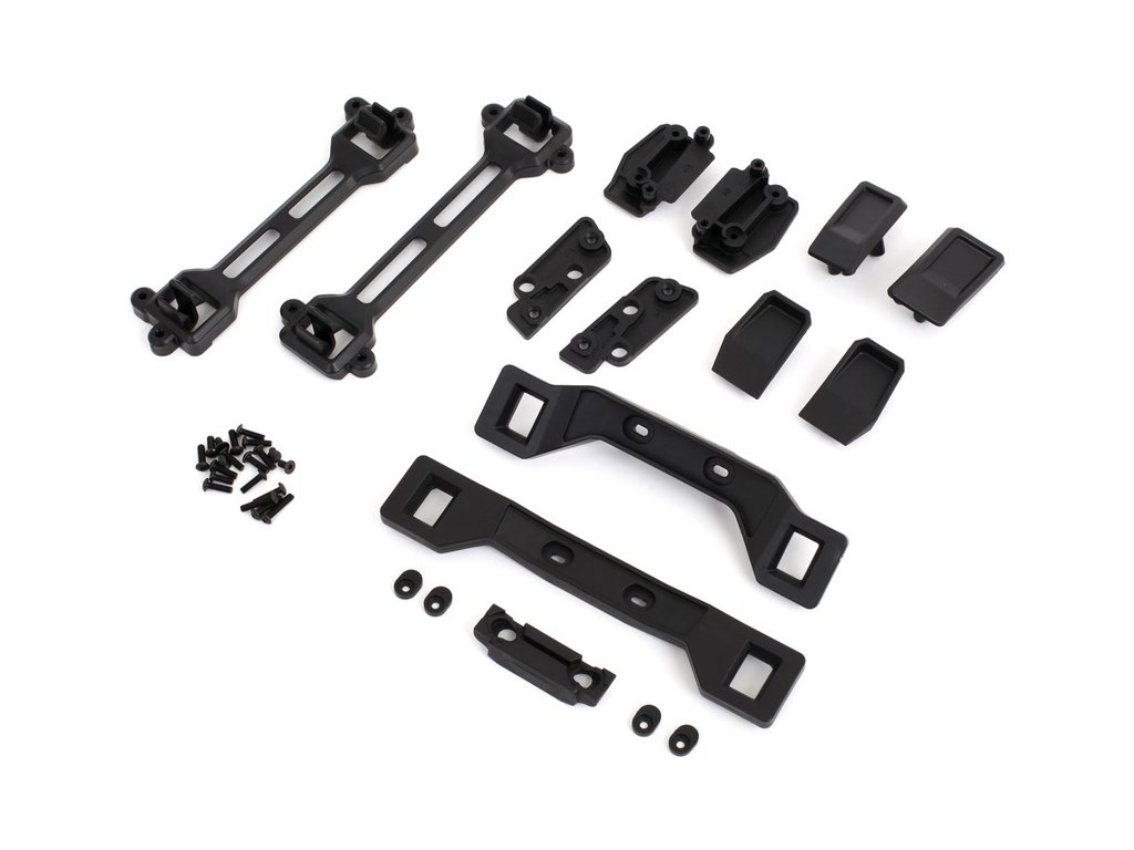 Balení obsahuje přední a zadní držáky, západky karoserie, montážní příslušenství, lepící šablony.