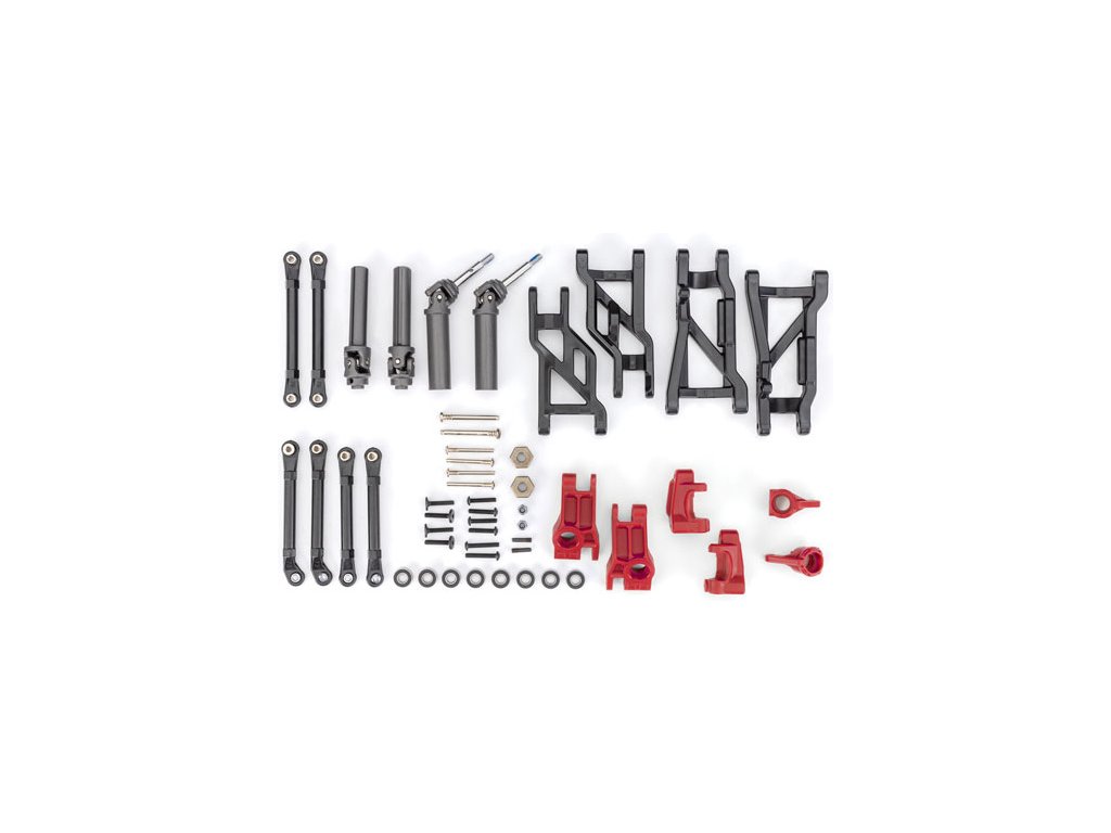 Tunigová sada zavěšení Extreme Heavy Duty - červená, pro vysoké zatížení. Upgradujte exponované části vašeho modelu Slash 2WD a Raptor 2WD. Jednotlivé díly sady jsou vyrobeny z odolných materiálů.