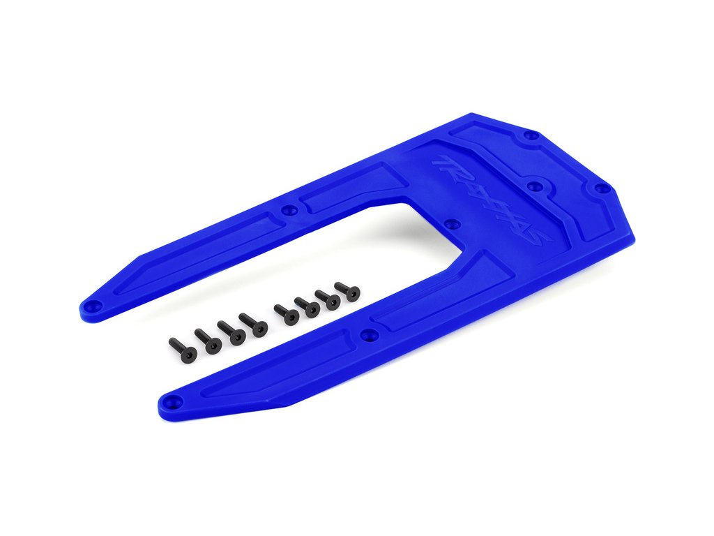 Tuningový díl pro RC model auta Traxxas Sledge: kryt šasi modrý. Slouží k ochraně spodní části hliníkové šasi proti poškrábání a poškození. Včetně šroubů k montáži.