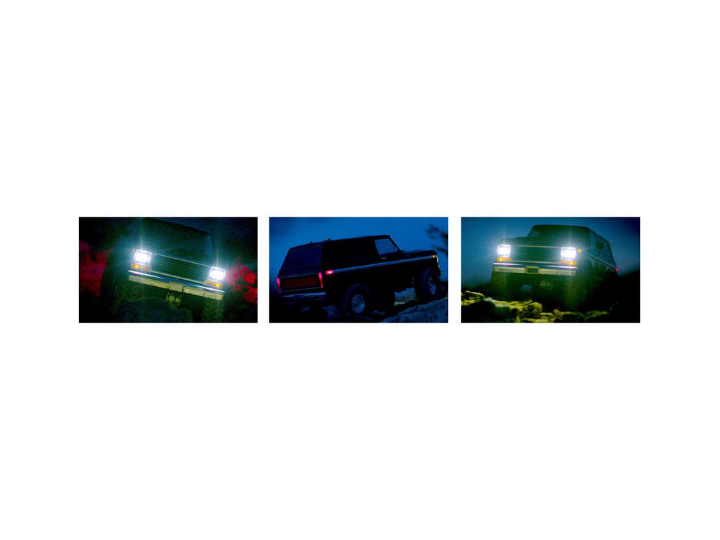 Sada LED osvětlení, pro RC modely aut TRX-4® Ford® Bronco nebo F-150® z roku 1979, posouvá realismus na vyšší úroveň. Obsahuje světlomety, koncová světla, boční obrysová světla a rozvodný blok (pro karoserie řady TRA8010 nebo TRA9230).