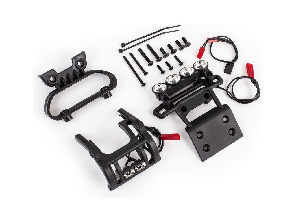 Balení obsahuje přední a zadní nárazník s LED osvětlením, držák nárazníku, Y-kabel pro zapojení do přijímače, montážní příslušenství. Návod CZ a manuál EN, DE, FR, SP.
