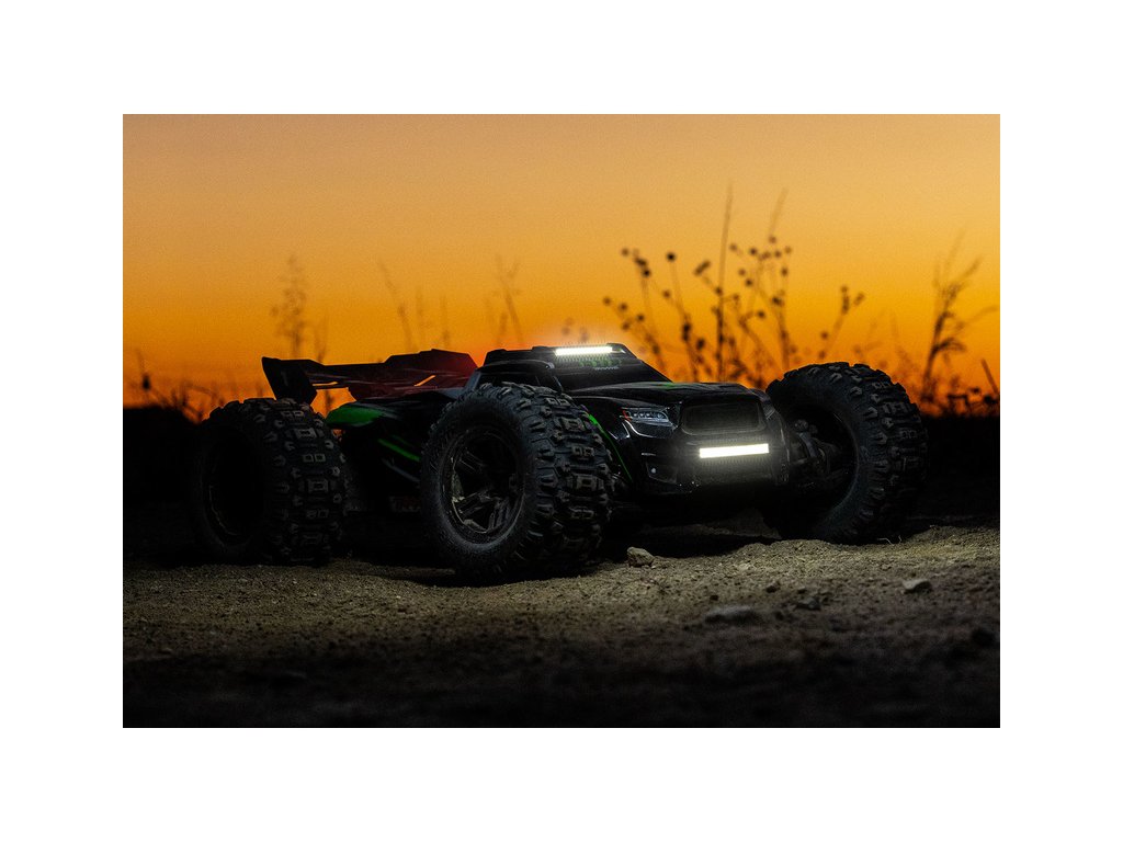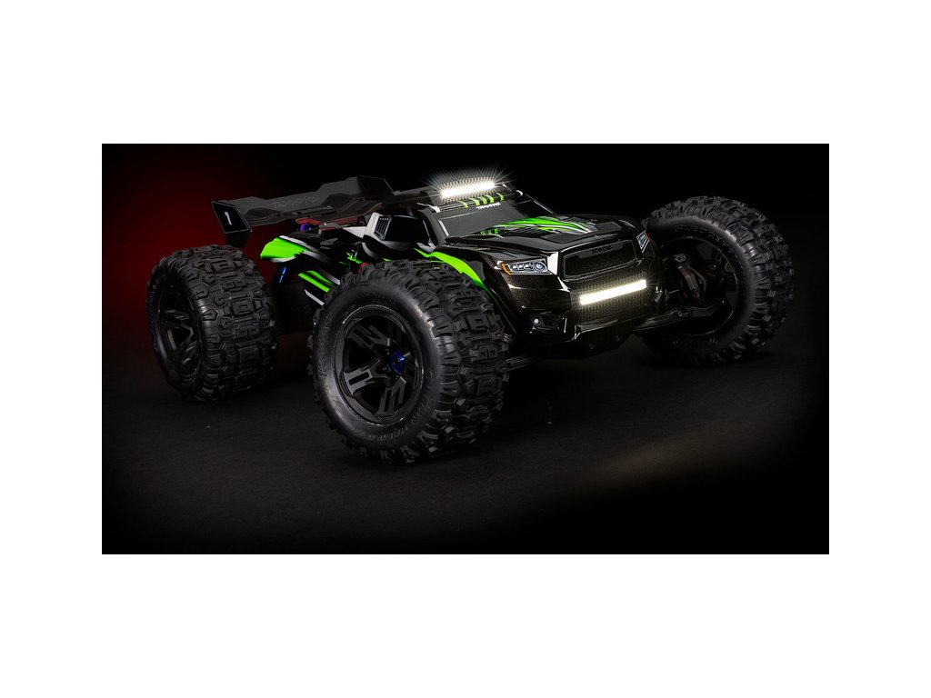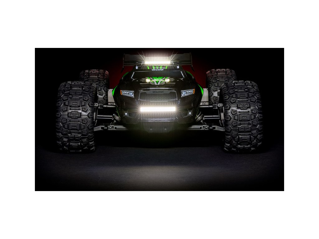 Zažijte ještě více zábavy a rozšiřte RC model auta Traxxas Sledge o kompletní sadu vysoce výkonného osvětlení. Přední bílé LED lišty, pod přední maskou a na střeše, dokonale nasvítí cestu před modelem. Zadní střešní LED lišta obsahuje funkční brzdová a zpátečková světla, která fungují jako na skutečném voze. Jednoduše připojte jednotlivé komponenty osvětlení do napájecí řídící jednotky a tu přes ochranný rozpojovací kabel do regulátoru. Vše je jednoduché, intuitivní a voděodolné*.