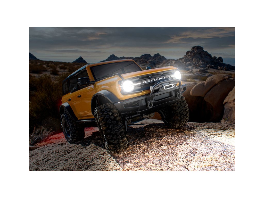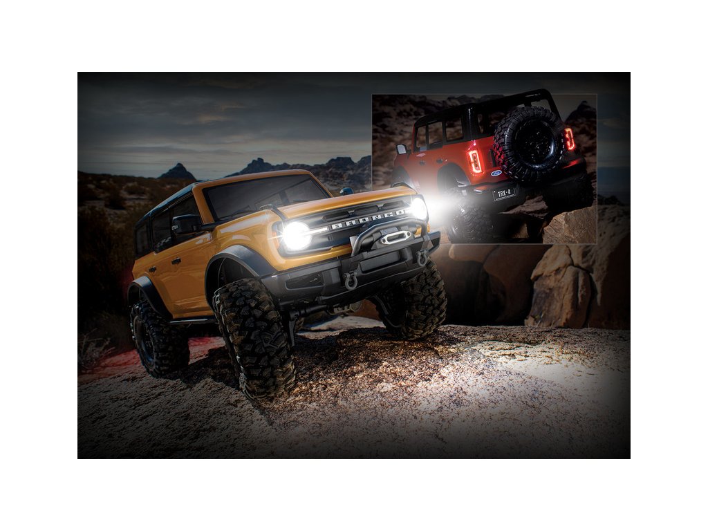 Kompletní Pro Scale LED osvětlení pro TRX-4 Ford Bronco 2021 s autentickými funkcemi světel. Funkční brzdová a zpátečková světla, funkční blinkry, funkční výstražná světla, nastavitelná intenzita předních světlometů. Snadná montáž.