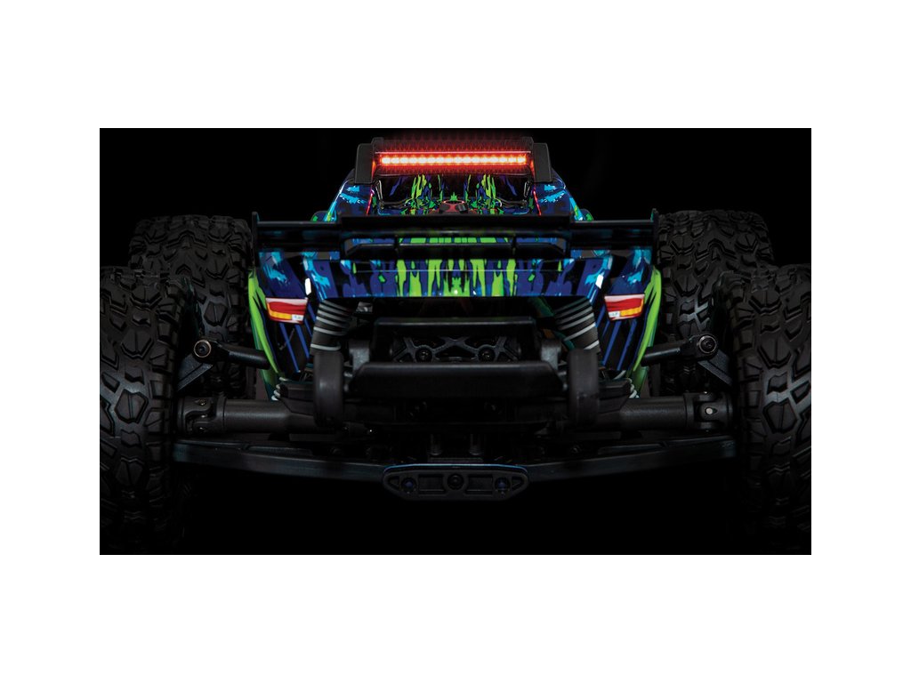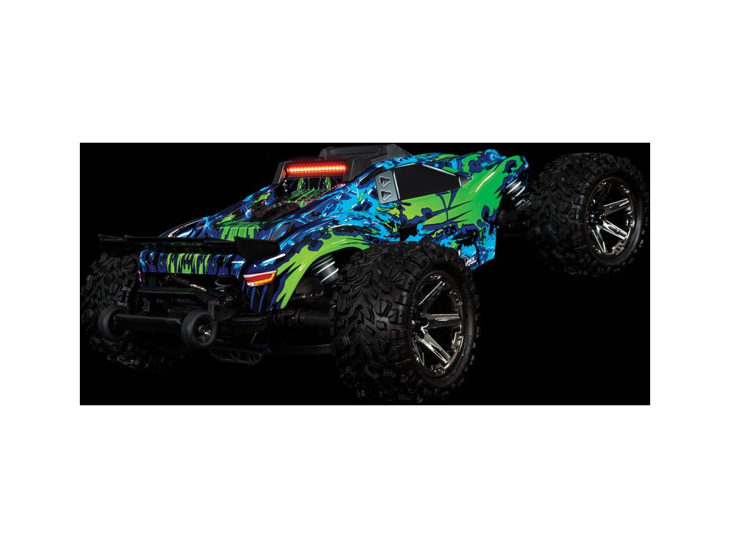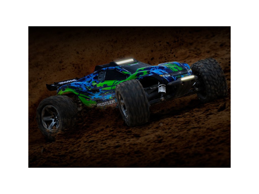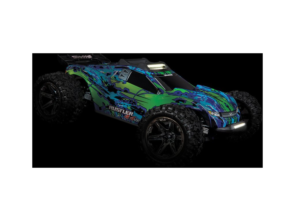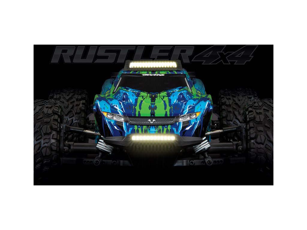 Zábava, s RC modelem auta Traxxas Rustler 4x4, nekončí ani po západu slunce, díky novému výkonnému LED osvětlení. Originální sada je přesně navržen pro tento model. Vysoce svítivé LED diody jsou integrovány do nového předního nárazníku a střešního rámu, vyrobeného nejtvrdšího kompozitního materiálu. Dvě intenzivní bílé světelné lišty směřují dopředu a zadní červená světelná lišta svítí dozadu. Osvětlení je napájeno přiloženým zdrojem, který zajistí stabilní svícení bez stmívání a blikání.