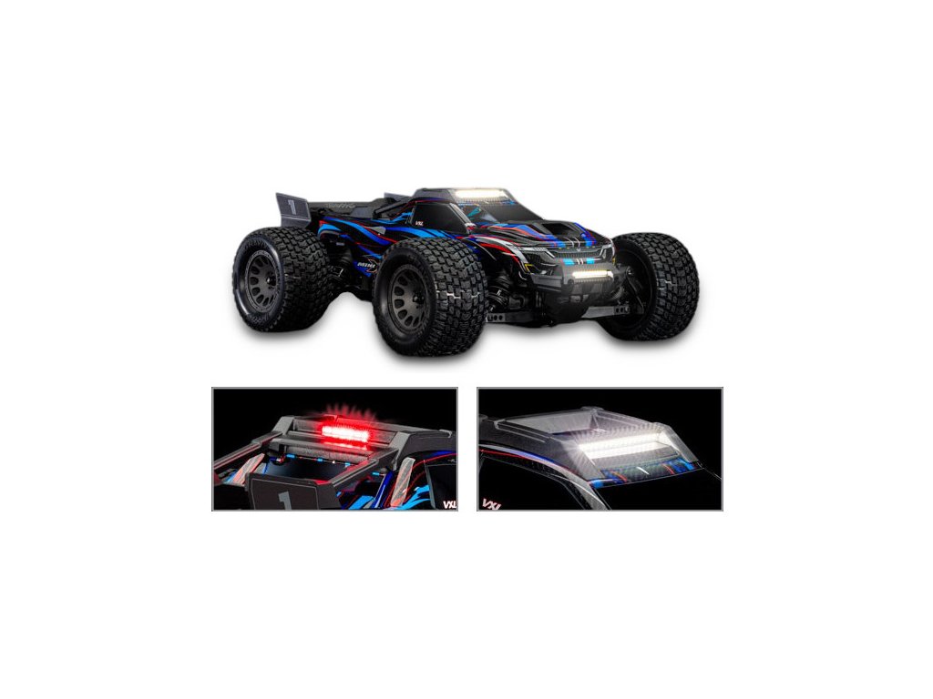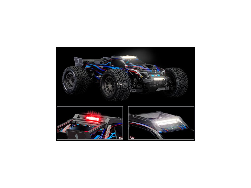 Zábava s RC modelem auta Traxxas Mini XRT, nekončí ani po západu slunce, díky novému výkonnému LED osvětlení. Originální sada je přesně navržen pro tento model. Vysoce svítivé LED diody jsou integrovány do nového předního nárazníku a střešního rámu. Střešní rám zároveň chrání karoserii. Osvětlení je napájeno přiloženým zdrojem, který zajistí stabilní svícení bez stmívání a blikání.