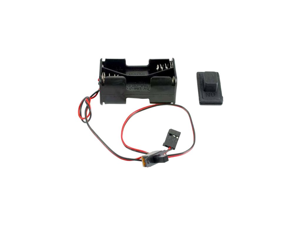 Náhradní díl pro RC model lodi Traxxas Villain: krabička pro 4 ks AA baterie, vypínač s krytkou.