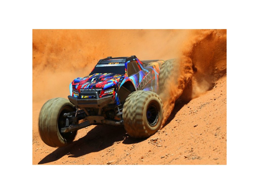 Nový RC model Traxxas Maxx si bere to nejlepší od svého větší bratra X-Maxxe, ale přichází v menším kompaktním měřítku. Konstrukce šasi byla zachována a vyznačuje se bezkonkurenční pevností a odolností. Nový Maxx se nezalekne žádného terénu a překoná ho rychlostí až 90 km/h. Extrémní výkon a akceleraci dodává střídavý motor 540XL a nový regulátor VXL-4S. O přesnou a bezpečnou jízdu i ve vysokých rychlostech se postará RC souprava Traxxas TQi 2,4 GHz s elektronickou stabilizací jízdy TSM.