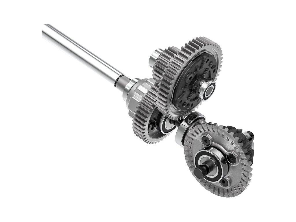 RC model auta Maxx Slash používá hnací soustavu s kovovými převody pro vysokou odolnost. Všechny rotační části jsou uloženy v ložiscích pro přesný a hladký chod.