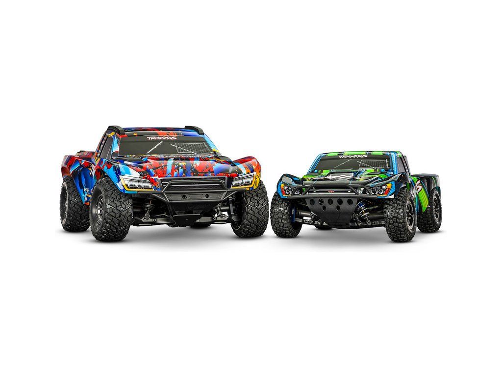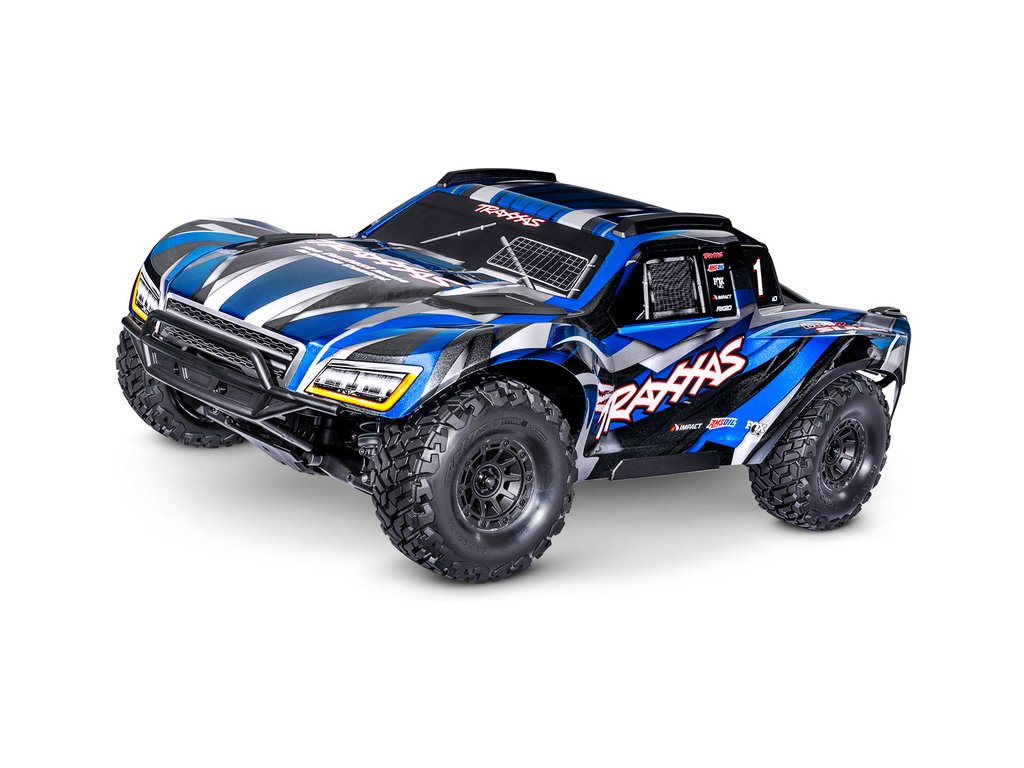 Výkonný RC model Traxxas Maxx Slash zvětšený na měřítko 1:8, postavený na robustním šasi Maxx s výkonným střídavým pohonem 6S. Model poskytuje brutální akceleraci, odolnost a rychlost až 112 km/h. Obsahuje vylepšené pohonné ústrojí, bezsponkovou karoserii a RC soupravu TQi.