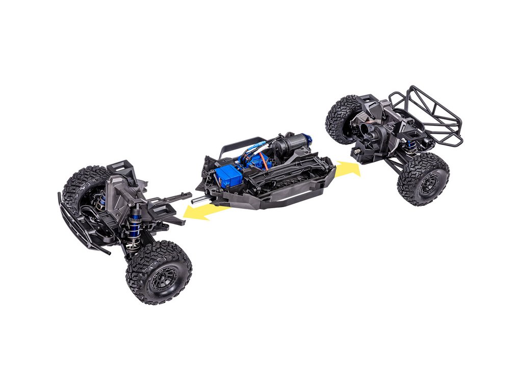 Modulární konstrukce umožňuje demontáž kompletní přední, či zadní části. Za pár minut tak máte úplný přístup ke snadnému servisu a nastavení modelu. Modularita šasi auta výrazně zjednodušuje údržbu, díky ní je mnohem snadnější se dostat k diferenciálům apod.