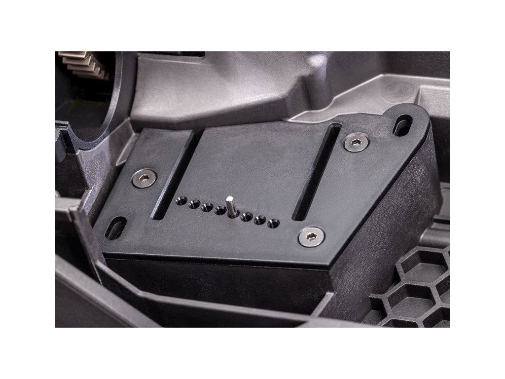 RC model Maxx Slash využívá vylepšené lože motoru se dvěma vodícími drážkami, které fixují motor bezpečně na místě. Pomocí otvorů s aretačním čepem, lze snadno a hlavně přesně nastavit mezi-zubovou vůli pastorku a čelního kola.