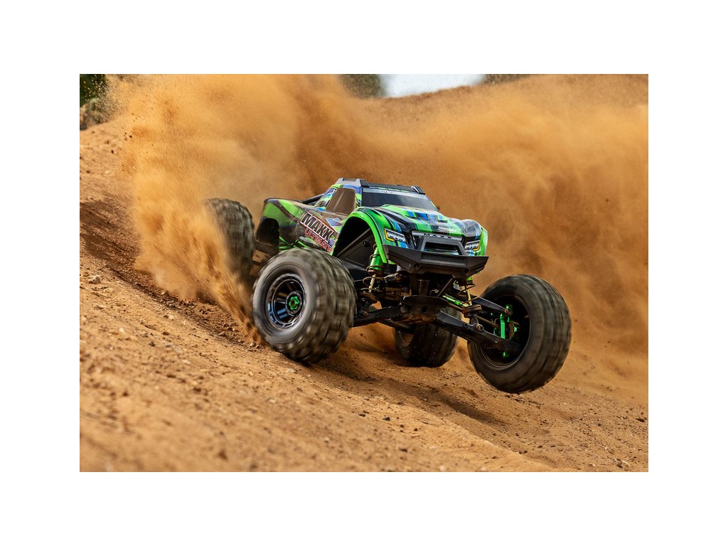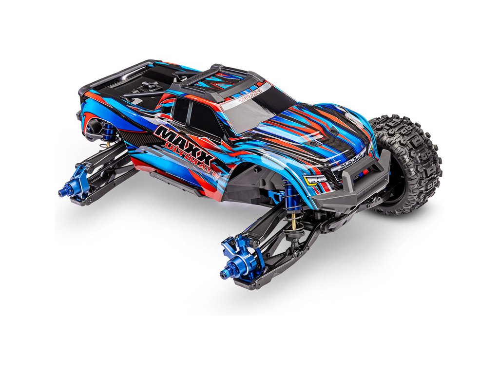 Extrémně výkonný a odolný RC model auta Traxxas Maxx 1:8, ve vrcholné verzi Ultimate s řadou hliníkových dílů, výkonnějším servem řízení, telemetrií a RC soupravou TQi s obsaženým Bluetooth modulem. Rychlost až 96 km/h. Instalovaná ramena Wide Maxx.