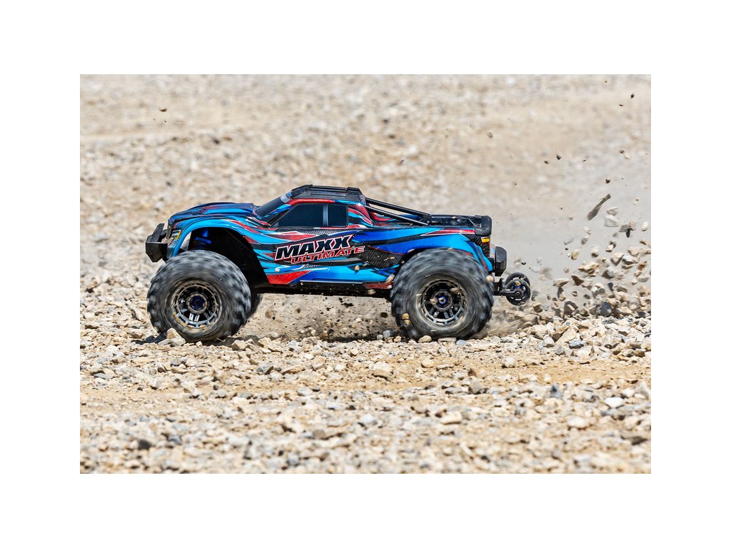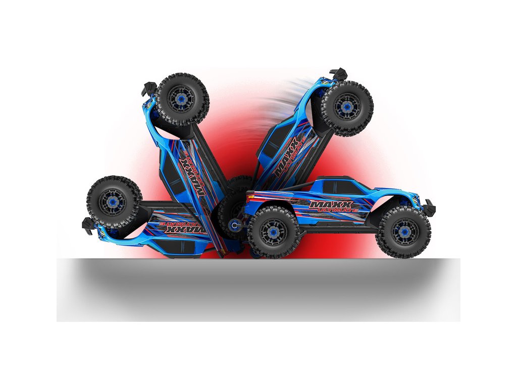 RC model Traxxas Maxx si bere to nejlepší od svého větší bratra X-Maxxe, ale přichází v menším kompaktním měřítku 1:8. Konstrukce šasi byla zachována a vyznačuje se bezkonkurenční pevností. V této vrcholné verzi Ultimate je navíc model již v základu vybaven těmi nejžádanějšími tuningovými díly z eloxovaného hliníku, ocelovými poloosami, hliníkovými tlumiči s titanovými pístnicemi, výkonnějším servem řízení a instalovaným Bluetooth modulem, který spojí model s aplikací v mobilním zařízení a umožňuje nastavení modelu a zobrazení telemetrie, jako je rychlost, otáčky, napětí akumulátoru a další. Nový Maxx se nezalekne žádného terénu a překoná ho rychlostí 96 km/h. Extrémní výkon a akceleraci dodává střídavý motor 540XL a regulátor VXL-4S. O přesnou a bezpečnou jízdu i ve vysokých rychlostech se postará RC souprava Traxxas TQi 2,4 GHz s elektronickou stabilizací jízdy TSM.