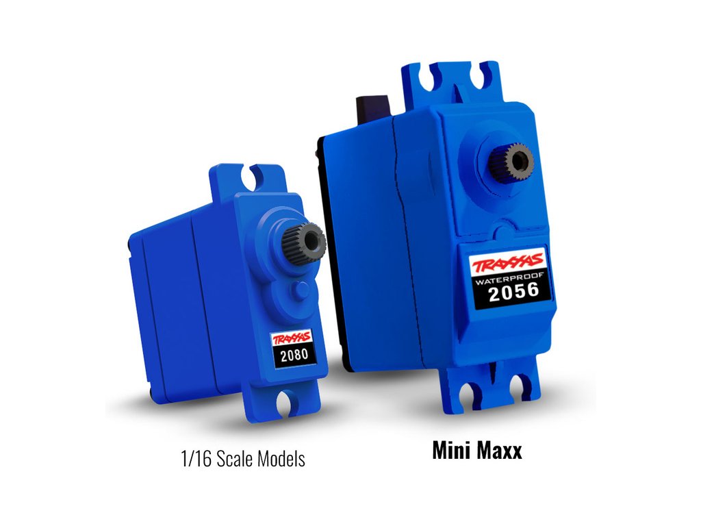 Digitální servo standardní velikosti Traxxas servo 2056 6.2kg.cm voděodolné se stejnosměrným motorem a nylonovými převody má moment 6.2 kg.cm a rychlost 0.20 s/60°@ 6.0 V. Pro odolnost vůči vodě* je krabička serva osazena těsněním.