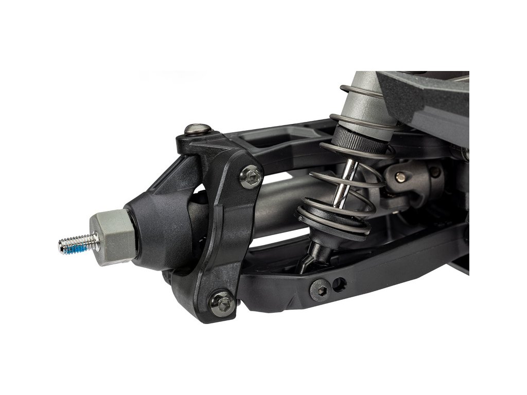 Dvojitá lichoběžníková ramena zavěšení udržují správnou geometrii v celém rozsahu pohybu. Jsou navrženy podle standardů modelů Maxx s větším množstvím materiálu v exponovaných místech.