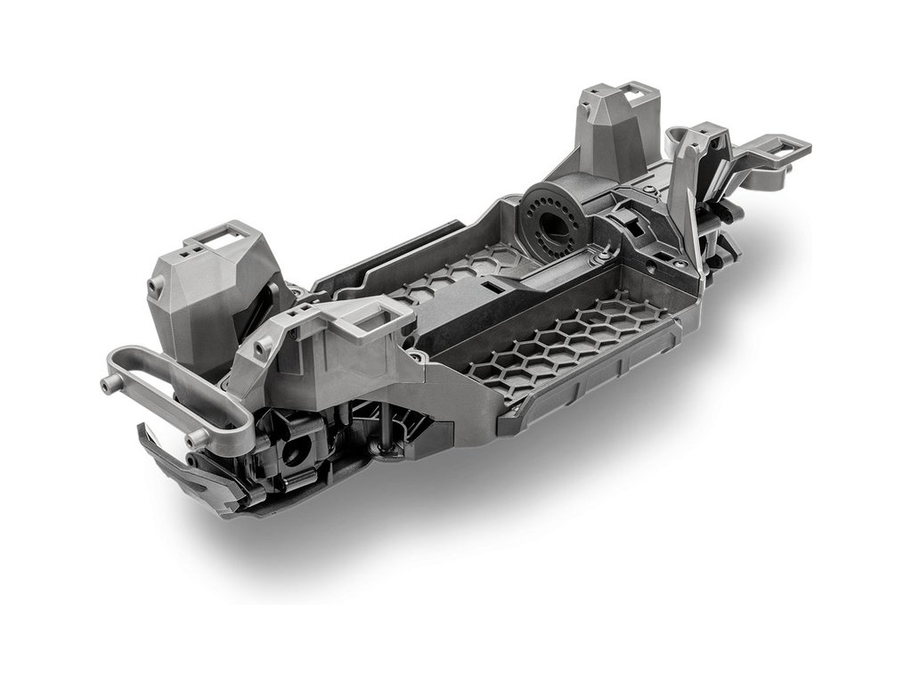 Robustní design šasi zachovává osvědčenou konstrukci prostorového kompozitního výlisku s šestiúhelníkovými prvky a integrovanými věžemi tlumičů. Šasi je vždy navrženo pro maximální pevnost a Mini Maxx to vše balí do mimořádně kompaktního designu.