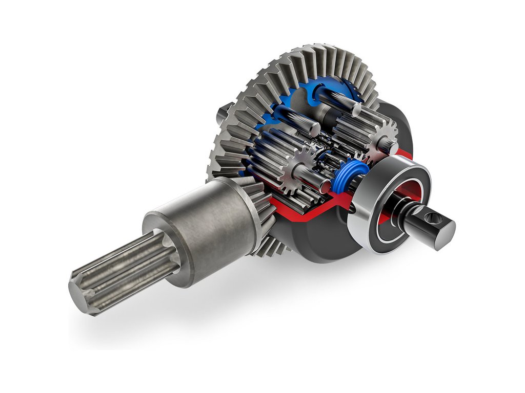 - 2 planetové diferenciály s kovovými převody pro distribuci výkonu