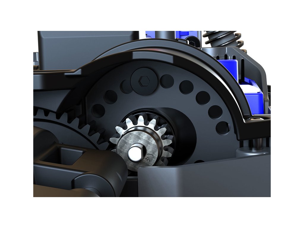 Modul ozubení převodů 32DP se běžně používá u větších modelů. Jednotlivé zuby jsou tak dostatečně velké a odolné pro výkon motoru i pro případný upgrade na ještě výkonnější pohon VLX-3S.