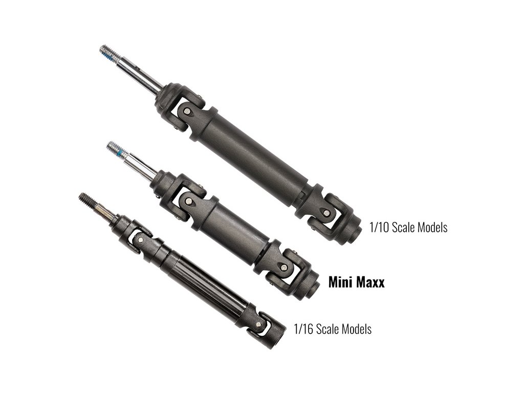 Hnací hřídele použité v RC modelu auta Mini Maxx jsou o 50% větší než standardní na modelech 1.16. Kardanové klouby i teleskopická těla jsou zesílena pro rychlé starty a ostré brzdění a to dokonce i při případnému upgradu na pohon VXL3-S