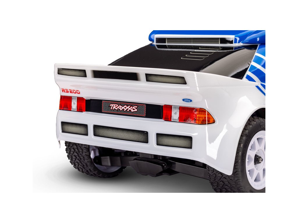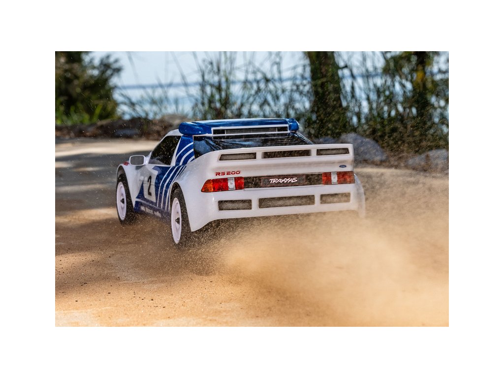 Stejně jako plnohodnotný rallyový vůz skupiny B, tak i Traxxas Mini Rally VXL Ford RS200 startuje na rychlostní zkoušky s pohonem všech kol, vyladěnou ovladatelností a vysokým výkonem. Díky nízkému a širokému posedu nabízí skvělou stabilitu a jistotu při jízdě, zatímco se bez námahy žene maximální rychlostí.