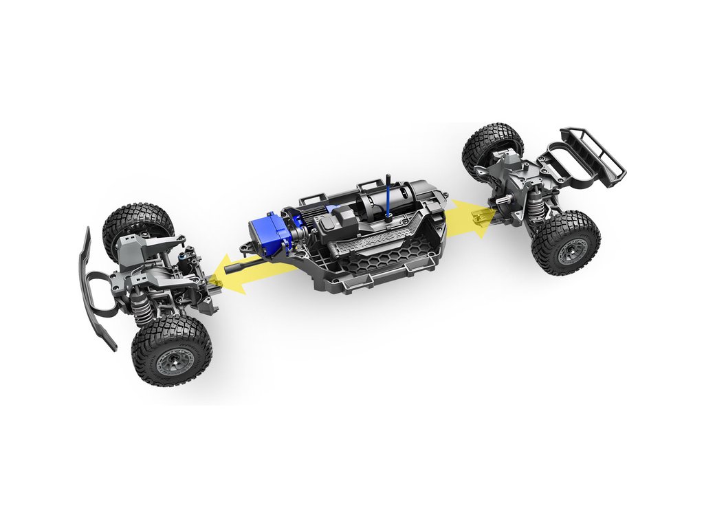 Střídavý motor z modelů 1:10 poskytuje vysoký výkon a nekončící zábavu. Regulátor se třemi jízdními režimy zaručí zábavu dospělým i dětem díky možnosti omezení výkonu na 50%. To umožňuje snížit rychlost dokud se děti a začátečníci v jízdě dostatečně nezdokonalí. Díky vysoce odolné konstrukci pohonného ústrojí je možné do modelu instalovat i výkonnější střídavý pohon VXL-3S a dosáhnout rychlosti až 80 km/h (motor s regulátorem VXL-3S se prodává samostatně). Ovládání zajišťuje vysílač TQ 2.4 GHz s precizním mechanikou řízení. K dispozici je široká paleta tuningových dílů, včetně osvětlení a kompletních náhradních.
