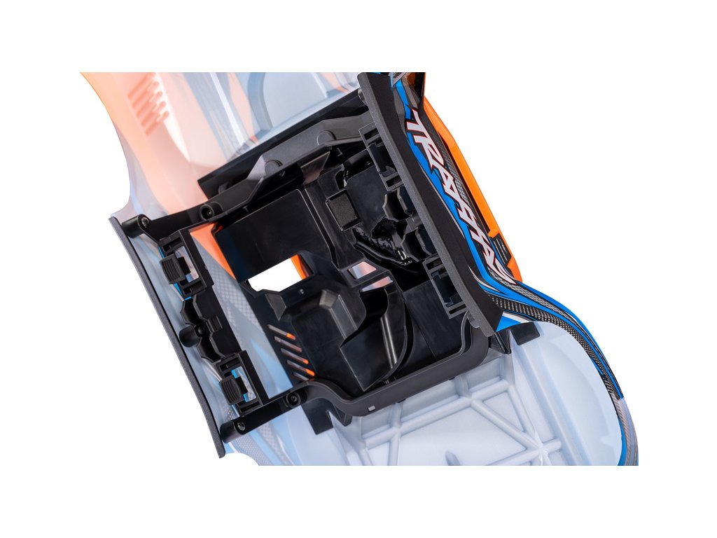 Inovativní bezsponkový systém uchycení karoserie je odolný s vnitřními výztuhami a snadno se používá. Stačí položit karoserii na podvozek a zacvaknout ji. Když je čas vyměnit baterii, stiskněte západky v podbězích a zvedněte ji, abyste se dostali dovnitř do modelu za několika sekund.