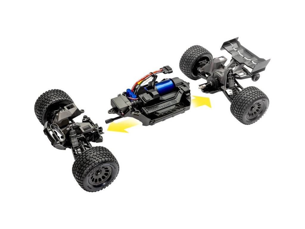 Nejvýkonnější střídavý pohon VXL z modelů 1:10 poskytuje extra vysoký výkon a nekončící zábavu. Regulátor se třemi jízdními režimy zaručí zábavu dospělým i dětem díky možnosti omezení výkonu na 50%. To umožňuje snížit rychlost dokud se děti a začátečníci v jízdě dostatečně nezdokonalí. Ze začátku můžete jezdit na obsažený 2S LiPo akumulátor a později použijte k napájení 3S LiPo akumulátor (prodává se samostatně) a získáte RC model auta, který má brutální výkon a rychlost jako žádný jiný model ve své třídě. Ovládání zajišťuje vysílač TQi 2.4 GHz s precizním mechanikou řízení, možností programování a doplnění Bluetooth modulu (BT modelu se prodává samostatně) pro spojení s aplikací Traxxas Link. K dispozici je široká paleta tuningových dílů, včetně osvětlení a kompletních náhradních dílů.
