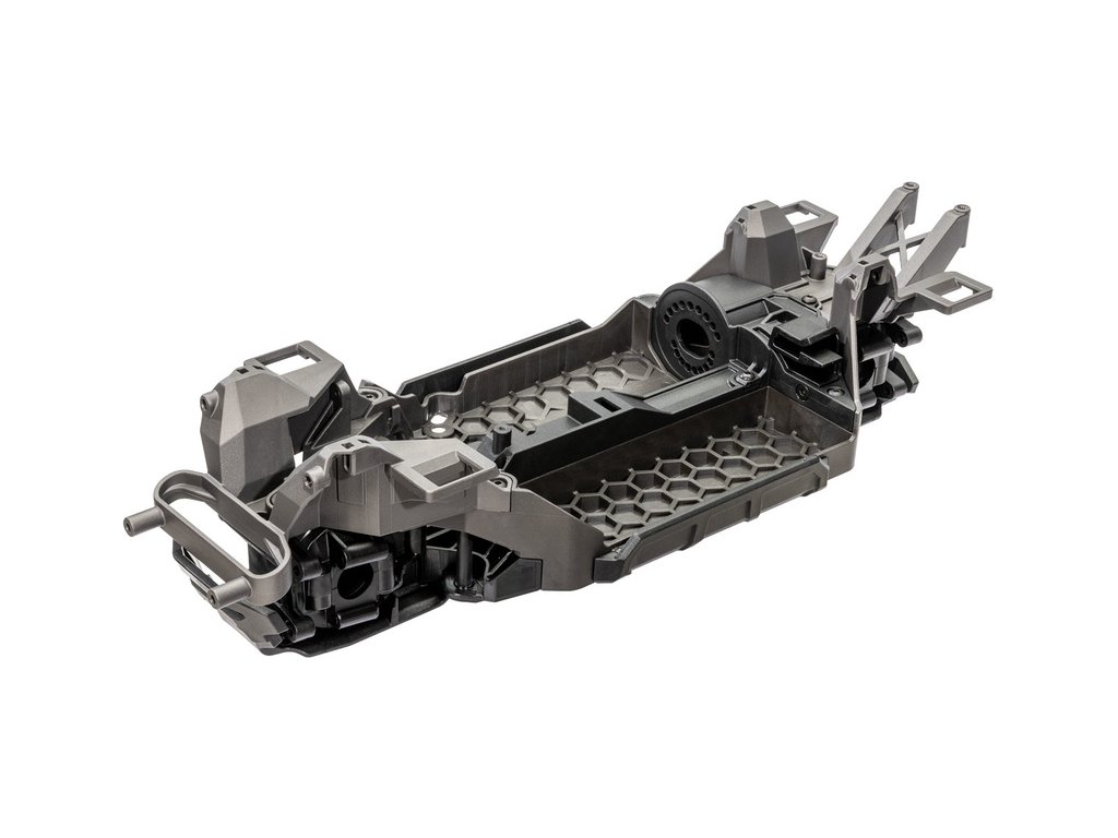 Robustní design šasi zachovává osvědčenou konstrukci prostorového kompozitního výlisku s šestiúhelníkovými prvky a integrovanými věžemi tlumičů. Šasi je vždy navrženo pro maximální pevnost a Mini XRT to vše balí do mimořádně kompaktního designu.