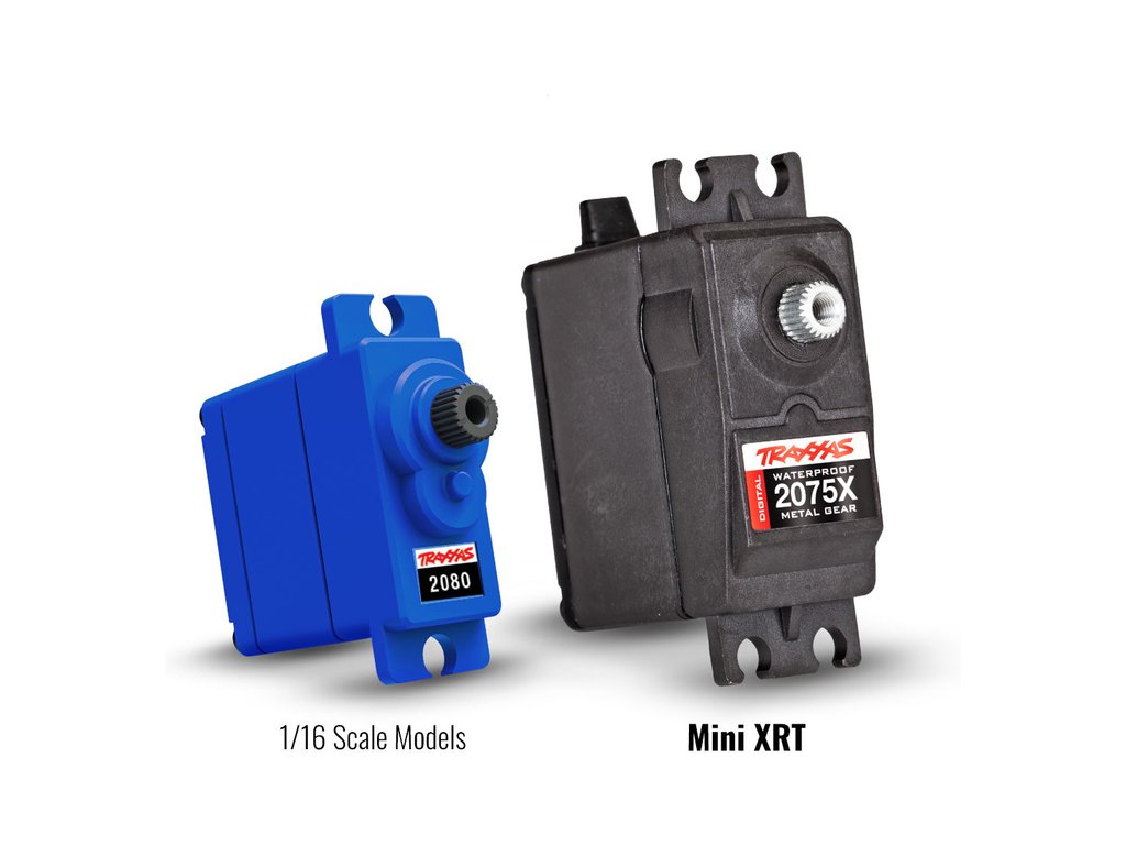 Řízení modelu zajišťuje digitální servo Traxxas 2075X high-torque, s momentem 9 kg.cm. Servo je vybaveno dvěma kuličkovými ložisky na hřídeli tisícihranu a kovovými převody pro maximální odolnost. Voděodolná* konstrukce.
