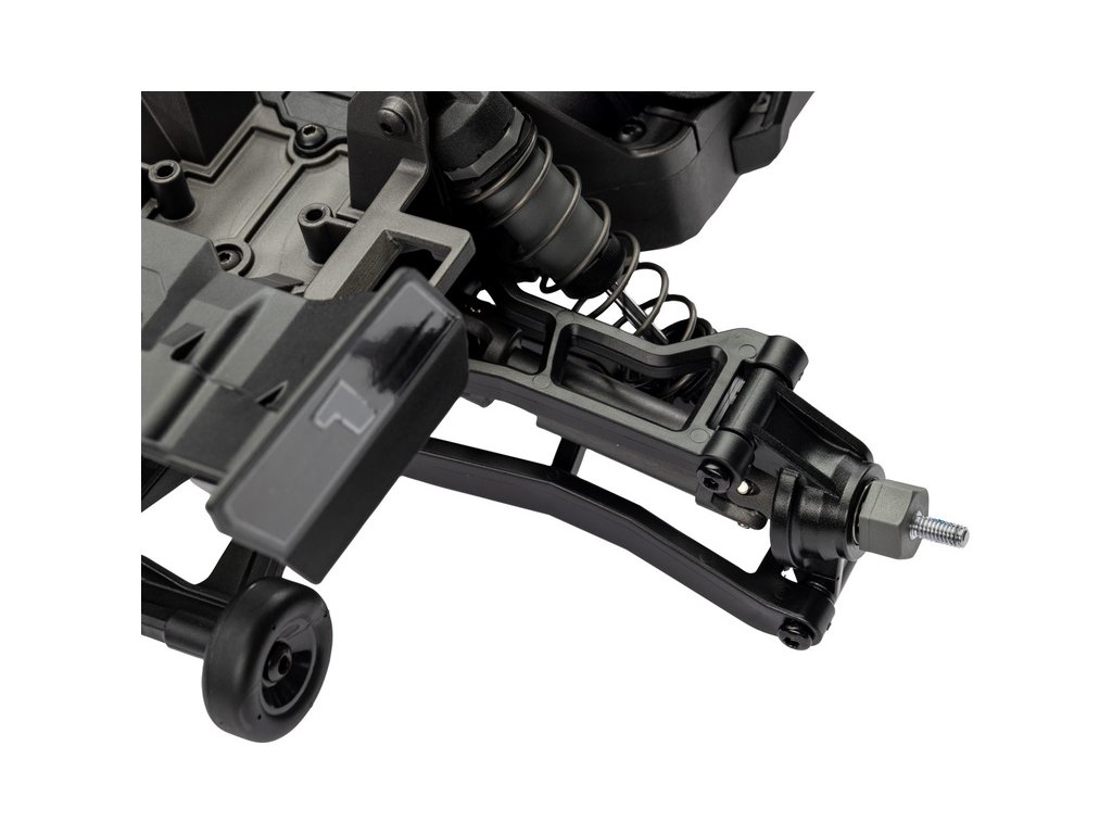 Kvůli obřímu výkonu pohonné soustavy je model vybaven nezbytnou lištou Wheelie s kolečky umožňující jízdu po zadních kolech a chránící model proti častému převracení.