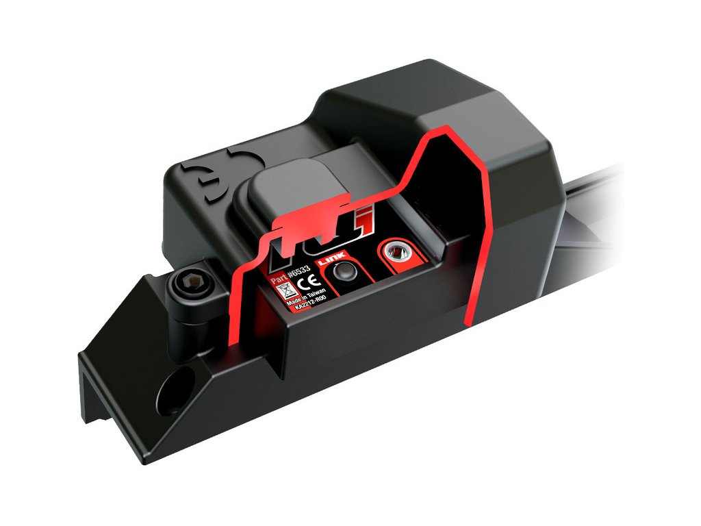 Akumulátor je uložen hluboko v šasi pro nízké těžiště a maximální ochranu. Západkový systém zaručuje snadnou a rychlou montáž a demontáž akumulátoru.