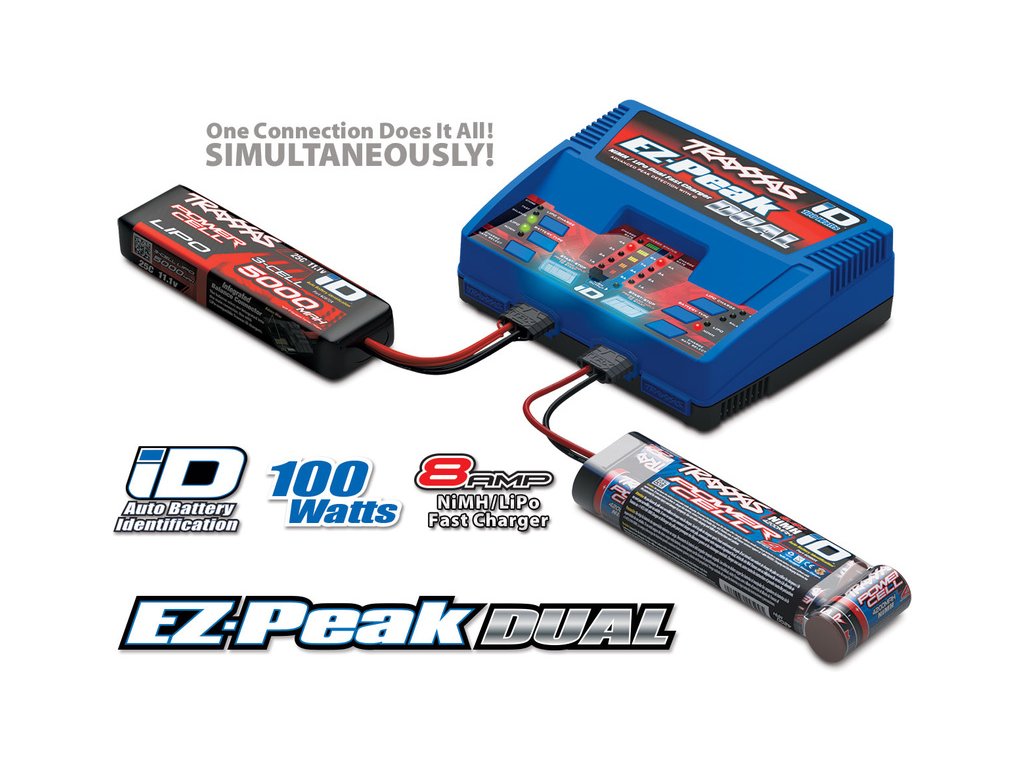 Duální nabíječ Traxxas EZ-Peak Plus na NiMH a LiPo akumulátory. Díky dnes zcela běžné technologii RFID nabíječ sám identifikuje připojené typy akumulátorů a sám nastaví parametry nabíjení. Pouze zapojíte akumulátor a nabíječ EZ-Peak Plus udělá práci za Vás!