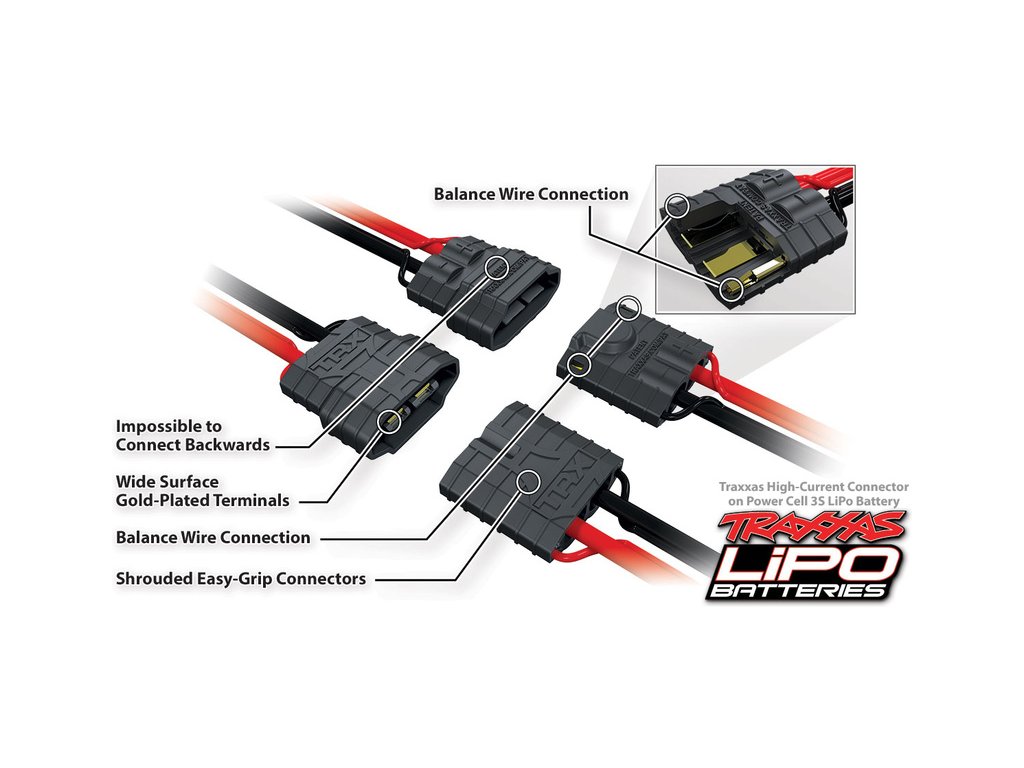 Nové konektory iD Traxxas jsou stejné pro LiPol i NiMH baterie. U LiPol je balanční konektor integrován do silového. Odpadá tedy nutnost připojit zvlášť silový a balanční konektor.