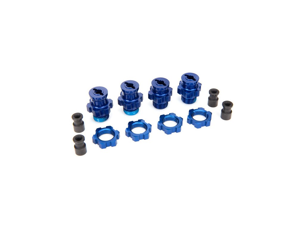 Náhradní díl pro RC modely aut Traxxas Slash, Rustler, Stampede, Ford F-150: náboj kola 17mm hliník modrý (4 ks)