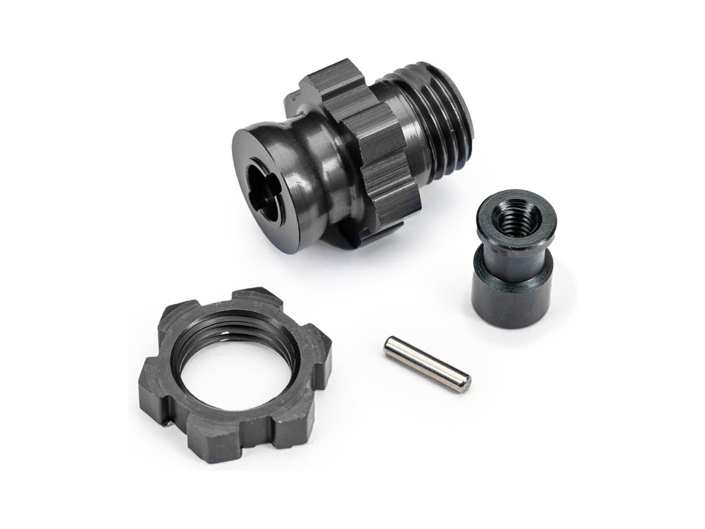 Traxxas náboj kola krátký 17mm s drážkami šedý (1) (pro #9080 - sadu Extreme Heavy Duty) - vč. 1x matice kol, 1x vložka náboje, 1x čep.