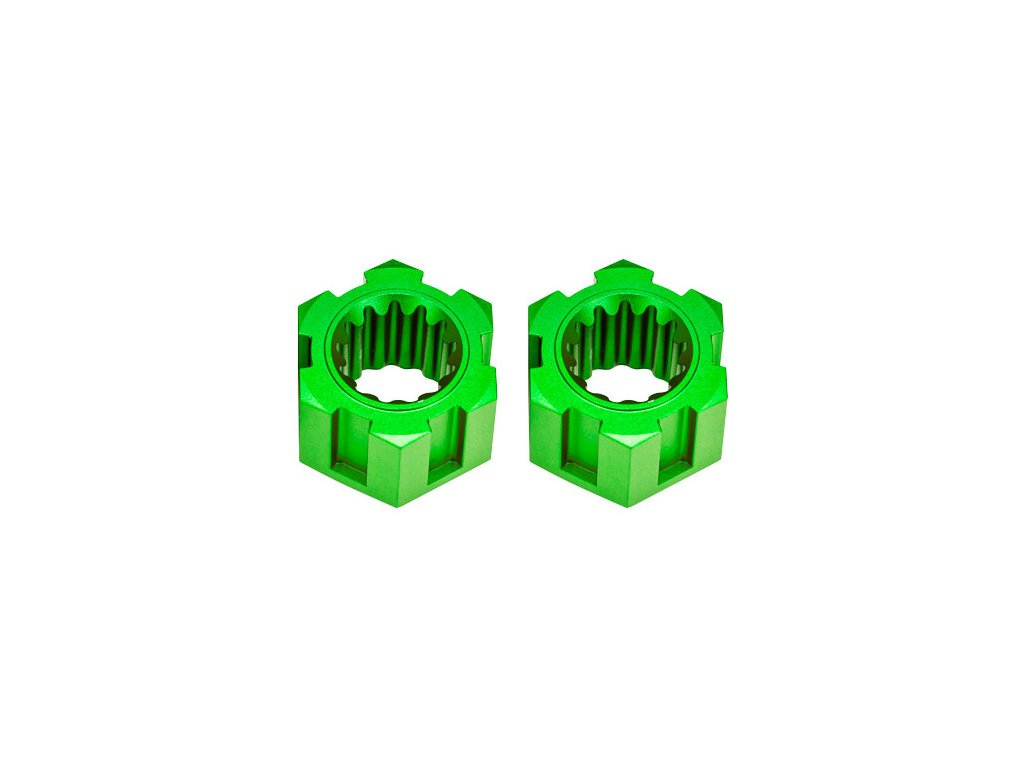 Traxxas náboj předního kola hliníkový zelený (2). Vyrobeno z velmi odolného hliníku 6061-T6 s barevným eloxováním. Drážkovaný šestihran 24 mm.