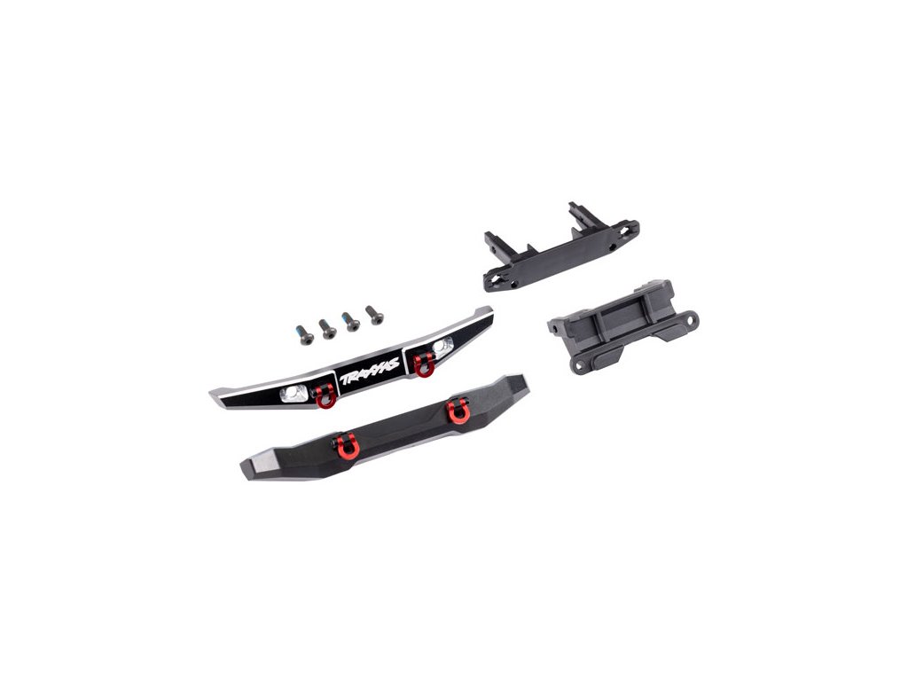 Tuningové nárazníky pro RC model auta TRX-4M Ford Bronco s červeně eloxovanými D-očky jsou vyfrézovány z masivního hliníku a dodají vašemu modelu styl a odolnost. Nárazníky mají odolný černý eloxovaný povrch s opracovanými hranami pro high-tech vzhled. Obsahují otvory pro standardní nárazníková světla Bronco a montážními výstupky na zadním nárazníku pro tažné zařízení. Konstrukce s vysokými nájezdovými úhly udržuje nárazníky daleko od překážek, o které by se mohly zadrhávat.