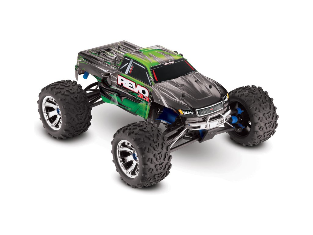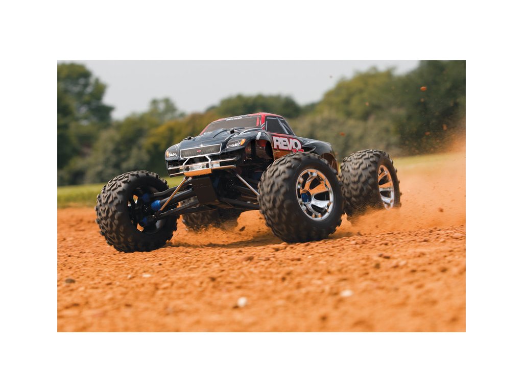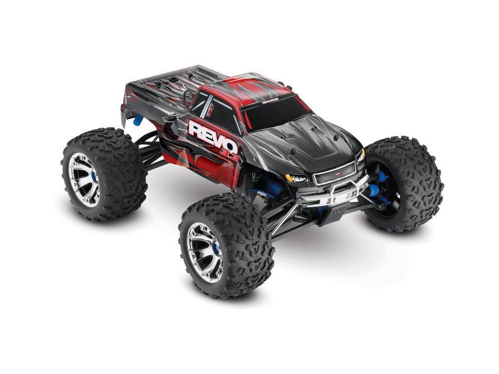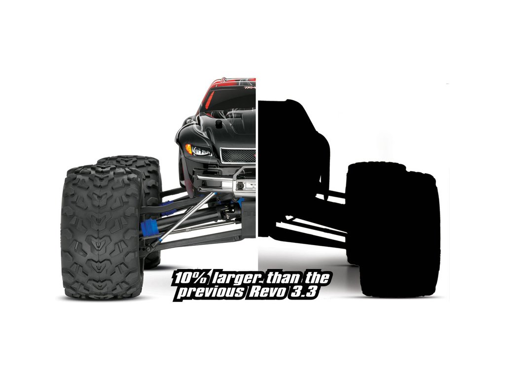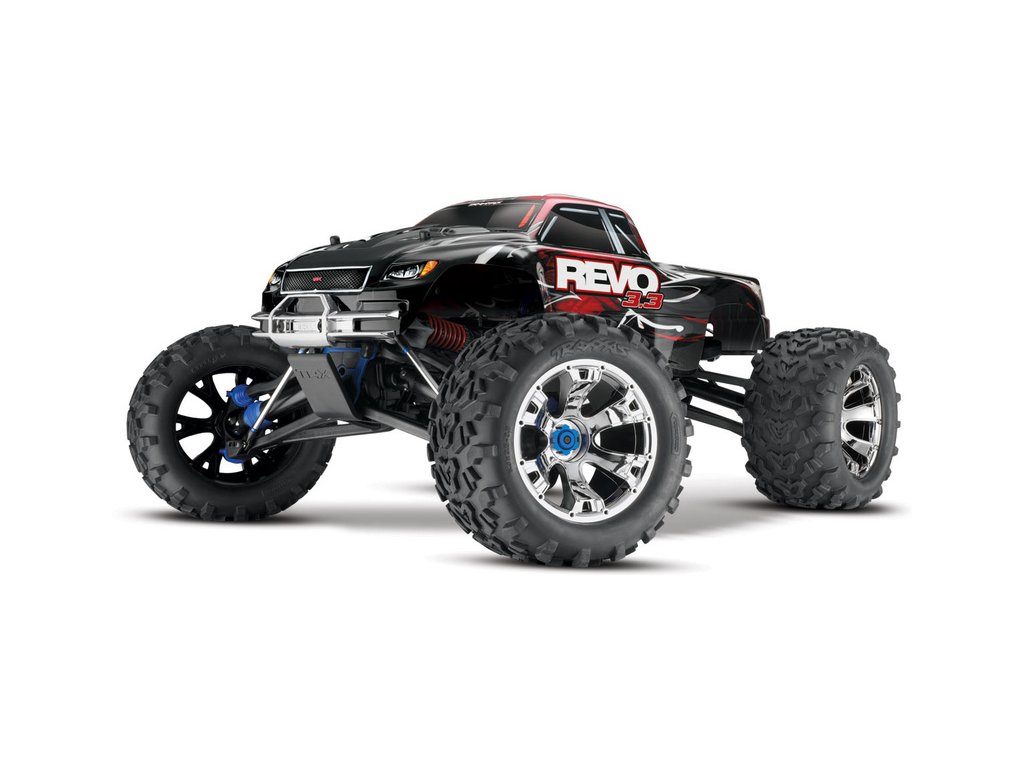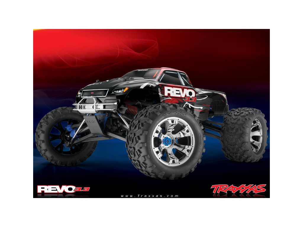 Traxxas Revo 3.3 Monster Truck 4WD je největší, nejtěžší a nejuniverzálnější Monster od Traxxas. Je vybaven výkonným závodním motorem TRX 3.3 s laděným výfukem, RC soupravou Traxxas TQi s nainstalovaným bluetooth modulem a TSM přijímačem. Rychlost modelu až 72 km/h!