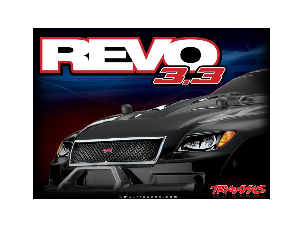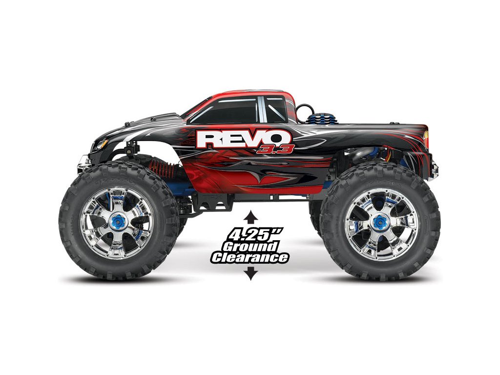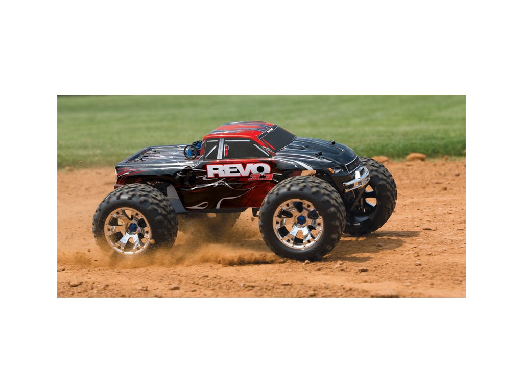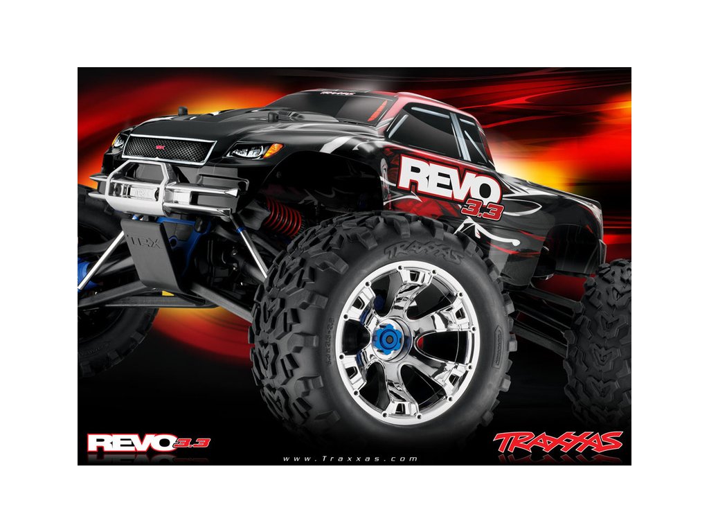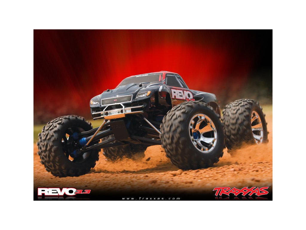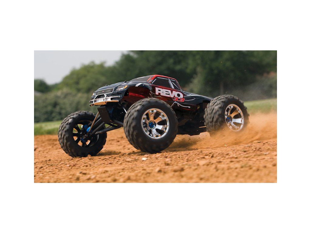 Traxxas Nitro Revo 3.3 je již 14-ti násobným vítězem magazímu RC Car Action! Nitro Revo je vybaveno výkonným závodním motorem TRX 3.3 s laděným výfukem, tuhý podvozek je ze 4 mm silného 6061-T6 modře eloxovaného hliníku. Obří pneumatiky o průměru 160 mm poskytují maximální přilnavost v terénu. Auto má velkou světlou výšku, díky které lze snadno projíždět i ty největší nerovnosti. Skvělé vedení na trati i díky náhonu 4WD a velkému rozvoru. Dosahuje rychlosti až 72 km/hod!