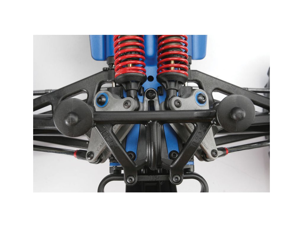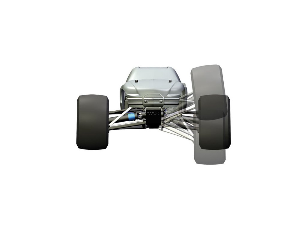 To, čím tento Monster vyniká, je unikátní 3D tvarovaná hliníková konstrukce podvozku, která v průřezu tvoří nosník. Proto je zde zachována tuhost, pevnost a nízká hmotnost. Neuvěřitelný úhel kývání ramen náprav je možný jen díky pokročilému nastavení geometrie Revo náprav a podélnému uložení tlumičů na podvozku. Tlumiče tak jsou chráněny před nárazy a poškozením. Průjezd i těžkým terénem při vysoké rychlosti nečiní autu žádný problém a zvládá je zcela bravurně.