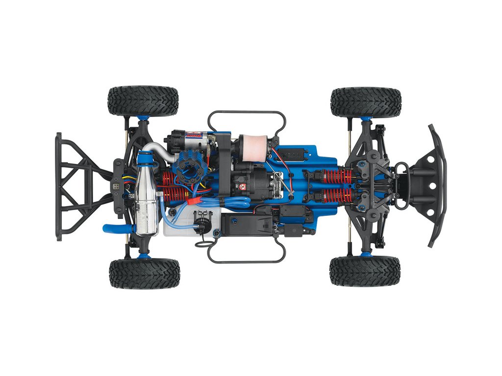 Závodní nitro motor TRX 3.3 je nainstalován na hliníkovém pevnostním šasi, spouštění motoru je pomocí systému EZ-Start, což je integrovaný elektromotor s převodovkou a elektronikou žhavení a externí baterie s tlačítkem startéru. Jednoduché a skvěle funkční. Větší kapacita vzduchového filtru dovolí jezdit déle bez nutného servisního zásahu. Dvoukomorový laděný výfuk Resonator zvyšuje maximální otáčky motoru o více než 10%.