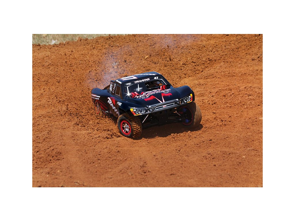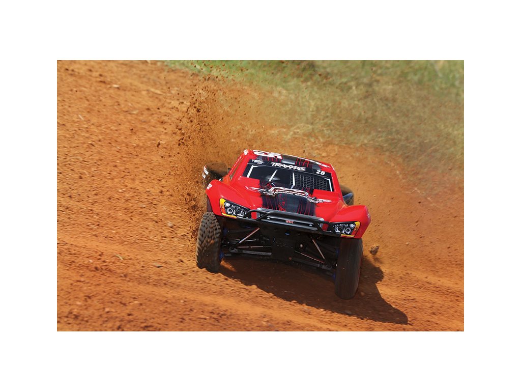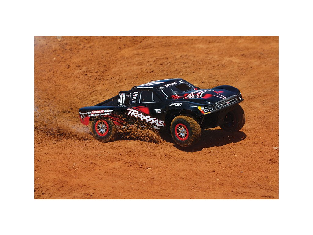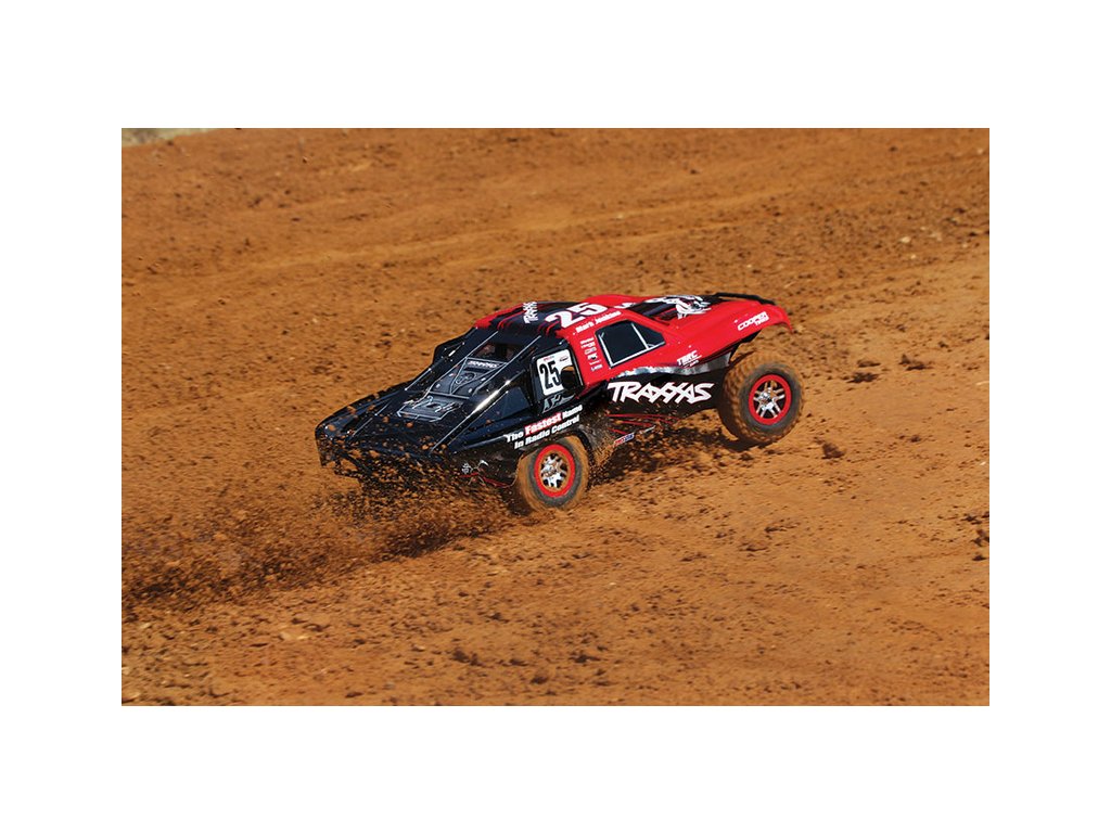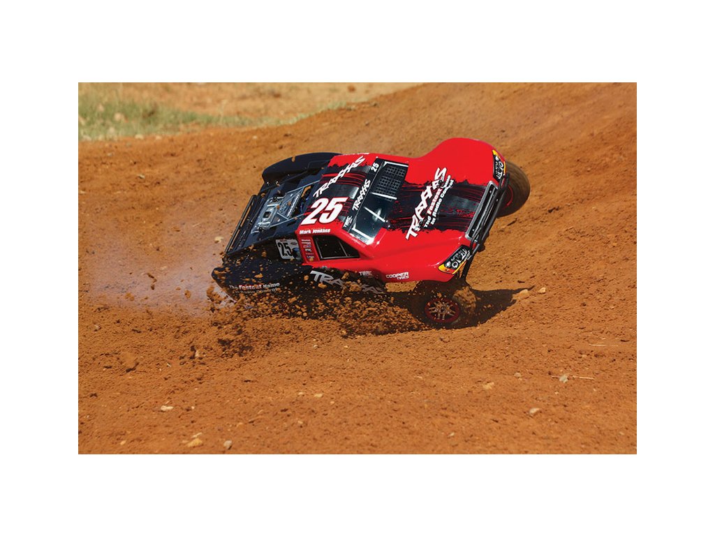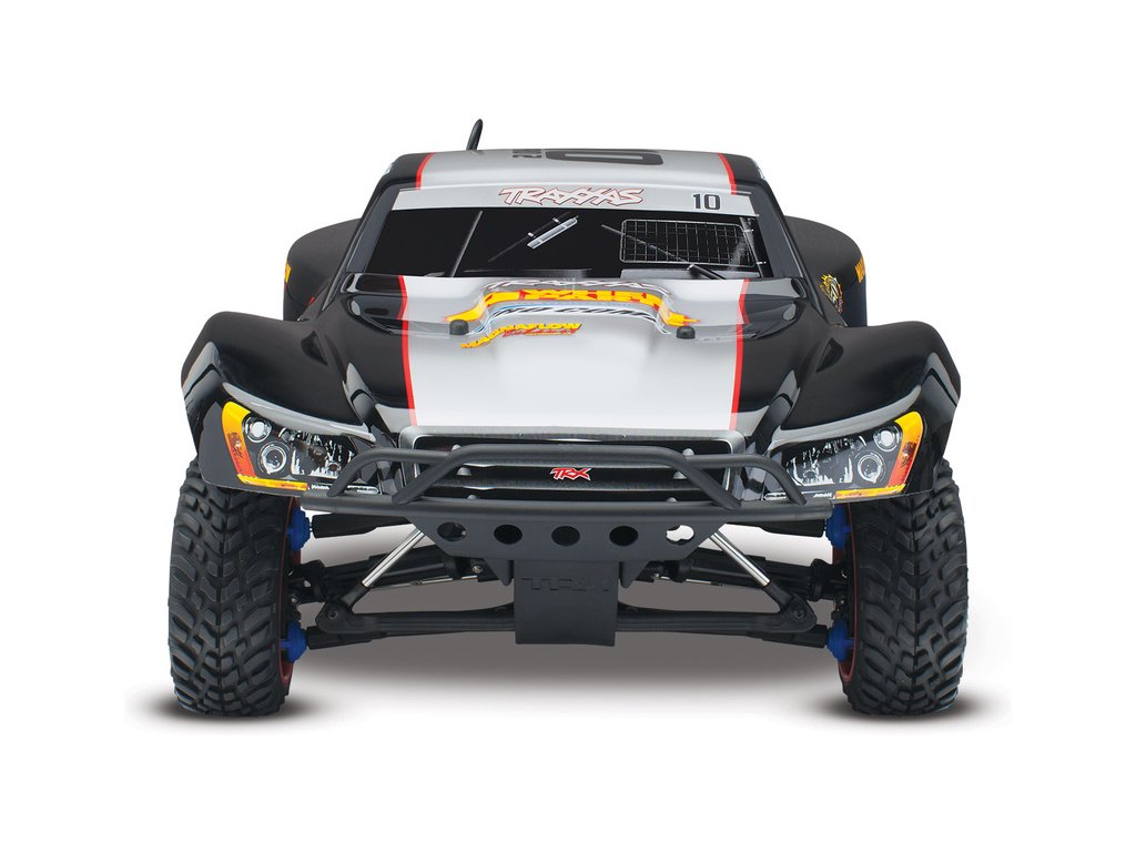 RC model auta Racing Short Course Truck Slayer Pro 4x4 je špičkový nástroj k vítězství. Je poháněn výkonným závodním motorem TRX 3.3 s laděným výfukem, tuhý podvozek je ze 3 mm silného 6061-T6 modře eloxovaného hliníku. Terénní pneumatiky poskytují maximální přilnavost v terénu. RC auto Traxxas Slayer má velkou světlou výšku, která mu nebrání projíždět i ty největší nerovnosti. Slayer Pro má neuvěřitelné zrychlení a skvělé vedení na trati i díky náhonu 4WD a velkému rozvoru. Dosahuje rychlosti až 80 km/hod!