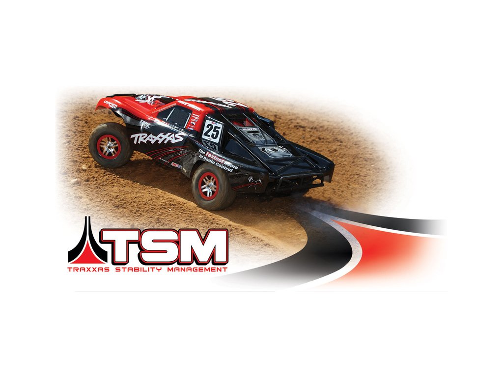 Stabilizační systém Traxxas Stability Management (TSM) umožňuje zažít nejen výkon, rychlost, zrychlení a projíždění zatáček extrémní rychlostí, ale zaručuje mnohem snažší řízení a kontrolu na kluzkých površích jako je prach, hladký beton nebo dokonce led a sníh.
