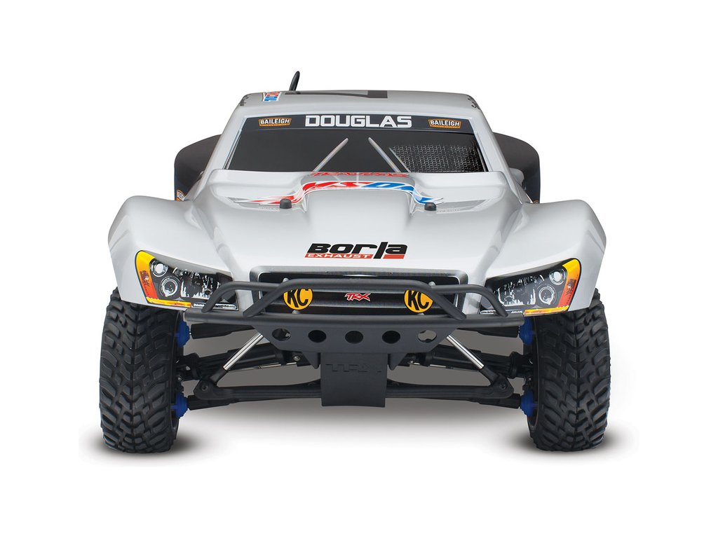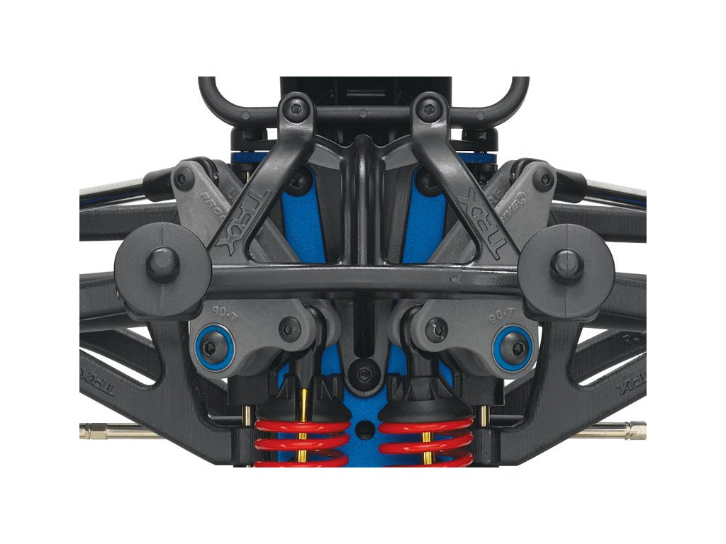 Závodní Short Course RC model auta Traxxas Slayer Pro 4x4 je špičkový nástroj k vítězství. Výkonný závodní motor TRX 3.3, laděný výfuk, tuhý podvozek je ze 3 mm silného 6061-T6 modře eloxovaného hliníku. Nově s RC soupravou Traxxas TQi a stabilizací Traxxas TSM.