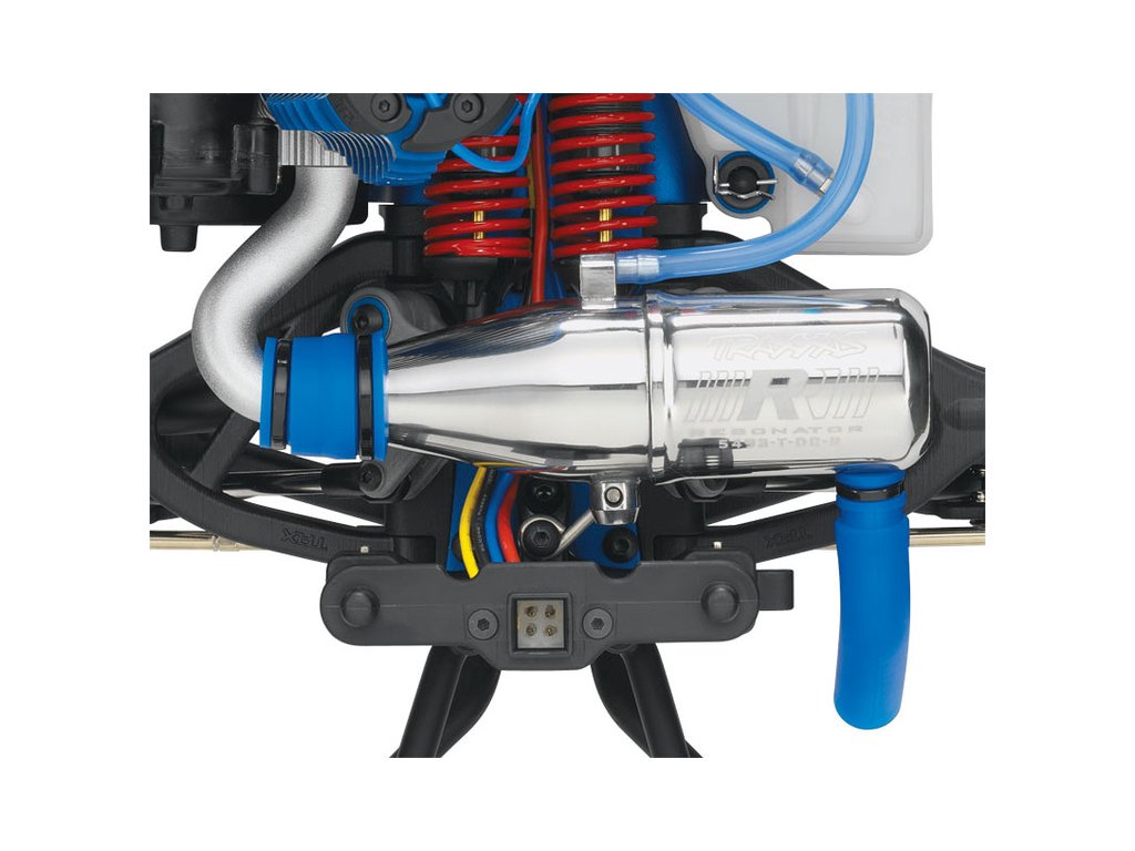 Závodní nitro motor TRX 3.3 je nainstalován na hliníkovém pevnostním šasi, spouštění motoru je pomocí systému EZ-Start, což je integrovaný elektromotor s převodovkou a elektronikou žhavení a externí baterie s tlačítkem startéru. Jednoduché a skvěle funkční. Větší kapacita vzduchového filtru dovolí jezdit déle bez nutného servisního zásahu. Dvoukomorový laděný výfuk Resonator zvyšuje maximální otáčky motoru o více než 10%.